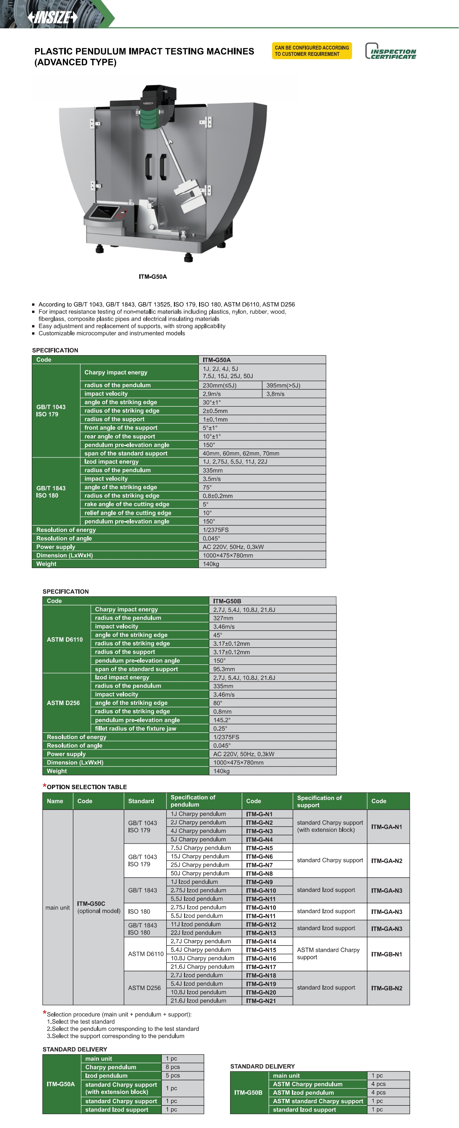 | ITM-G50B | ASTM D6110, ASTM D256 |