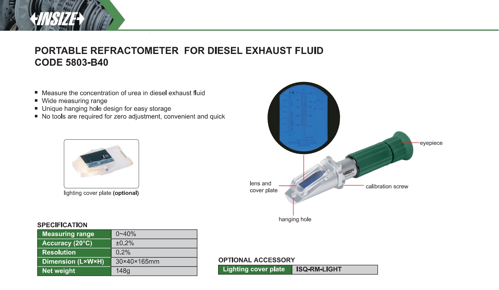 | 5803-B40 | Refractometer | Off-line | Diesel exhaust fluid | Scale |