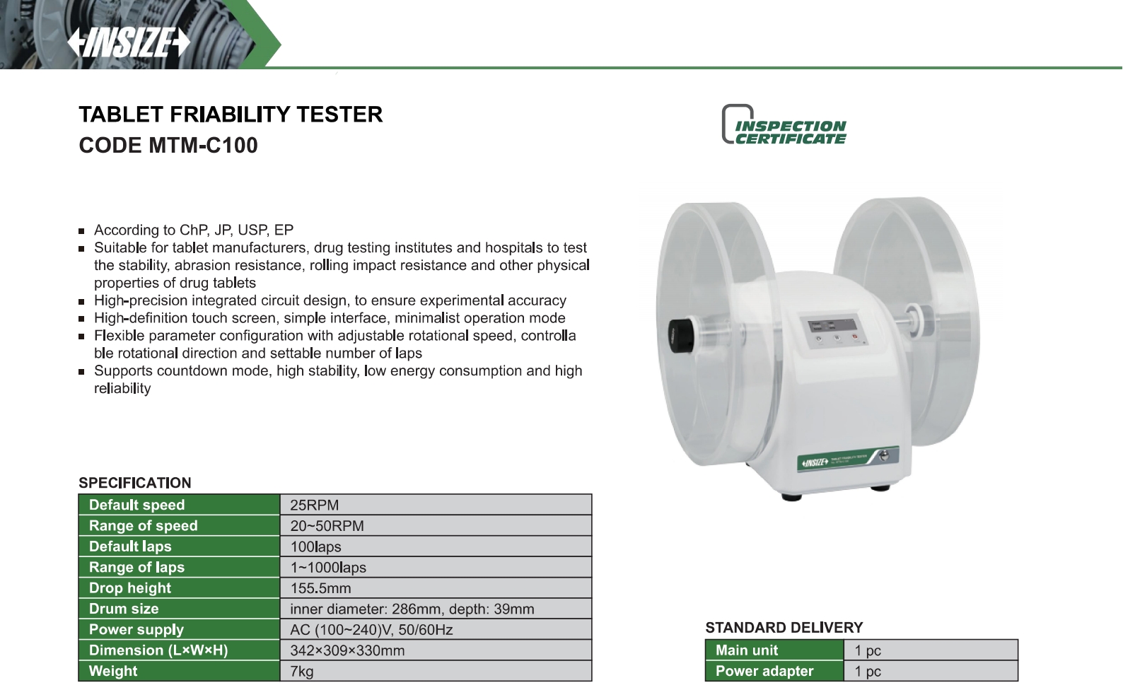 Suitable for tablet manufacturers, drug testing institutes and hospitals to test the stability, abrasion resistance, rolling impact resistance and other physical properties of drug tablets