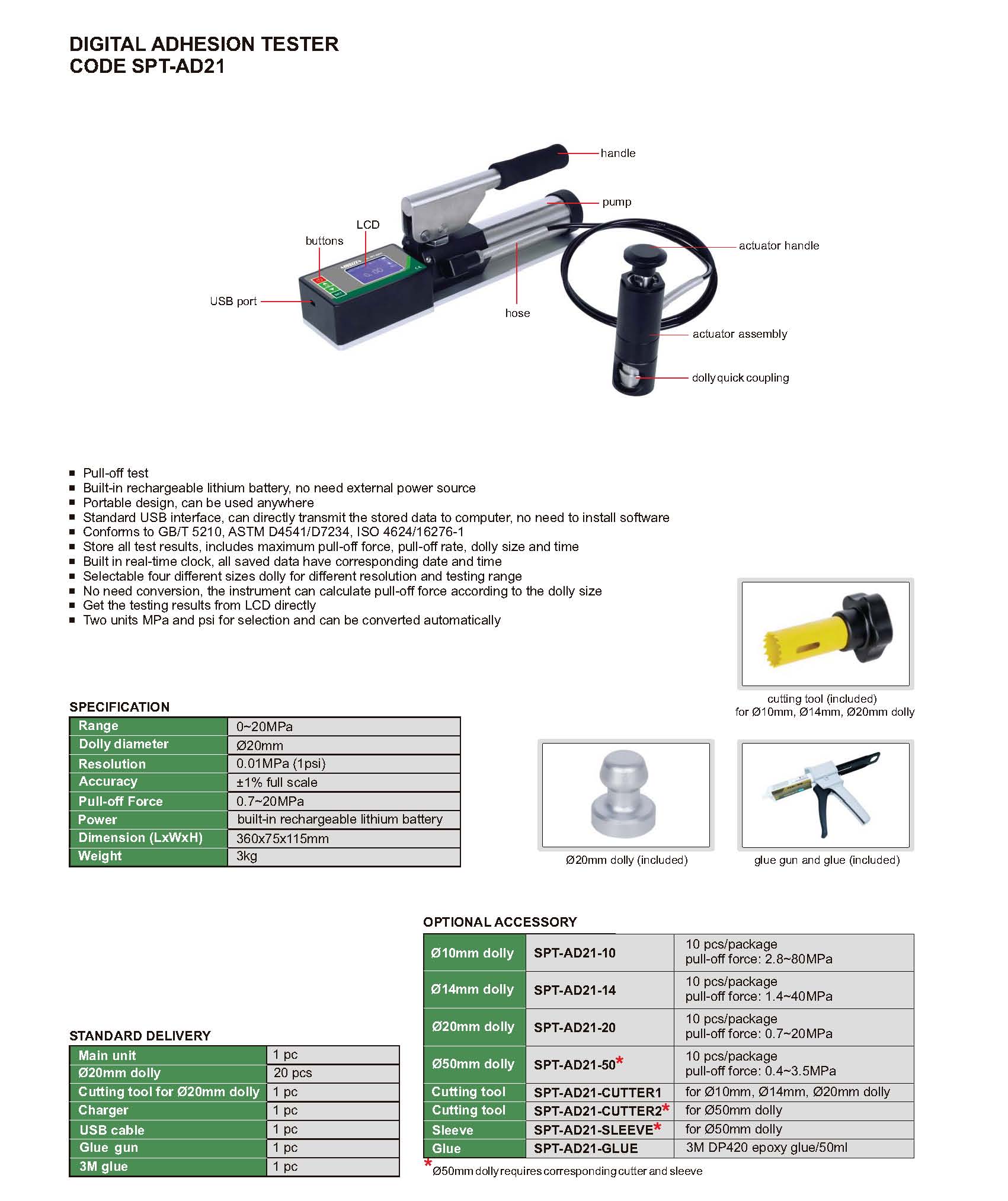 Conforms to GB/T 5210, ASTM D4541/D7234, ISO 4624/16276-1