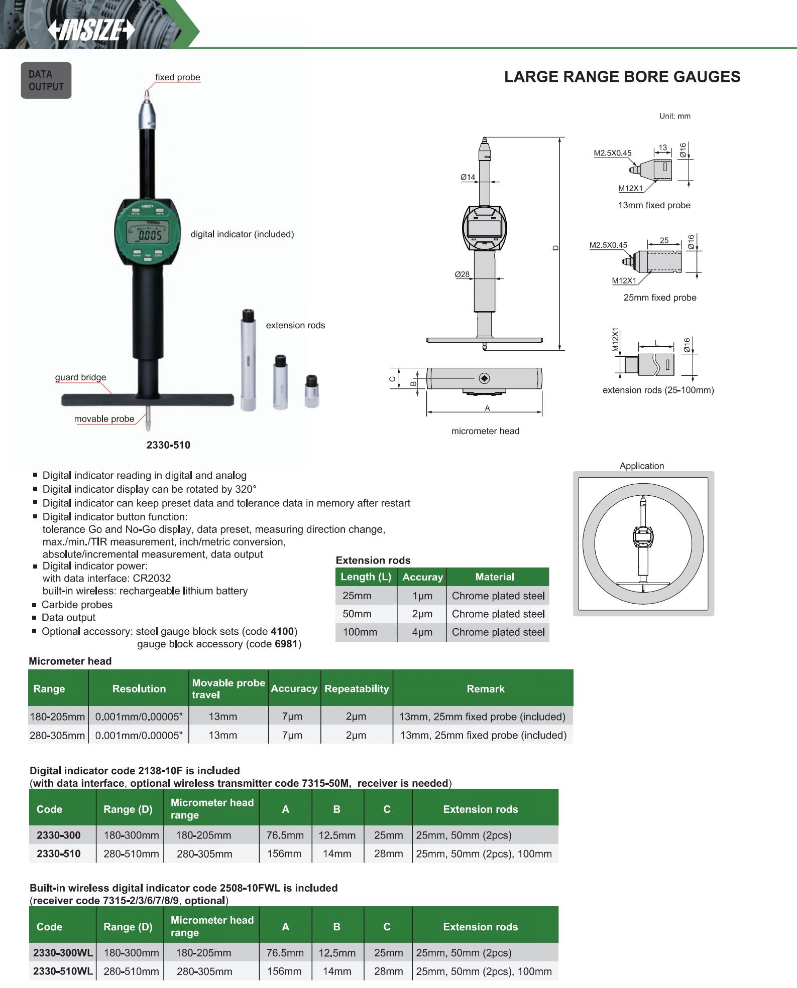Digital indicator button function: tolerance Go and No-Go display, data preset, measuring direction change, max./min./TIR measurement, inch/metric conversion, absolute/incremental measurement, data output