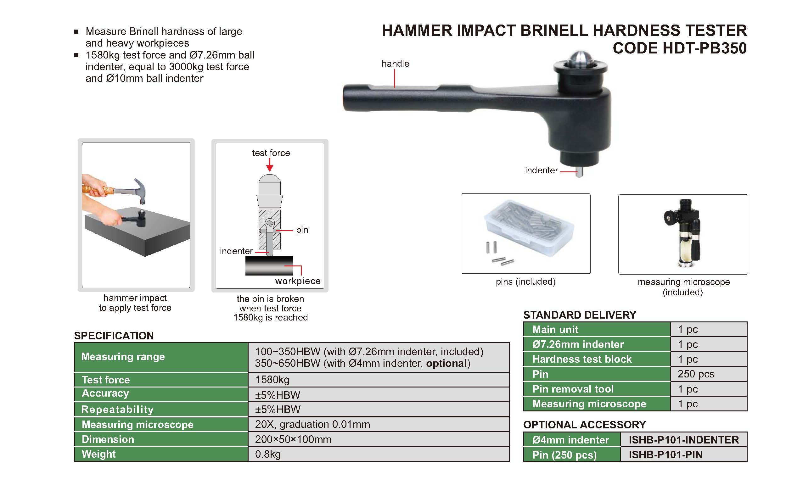 | HDT-PB350 | 100-350HBW (with Ø7.26mm indenter, included) | 1580kg |