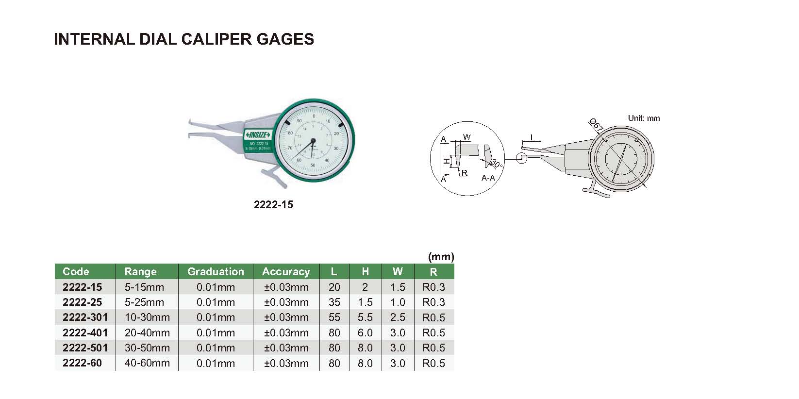 | 2222-60 | 40-60mm | ±0.03mm | 0.01mm |
