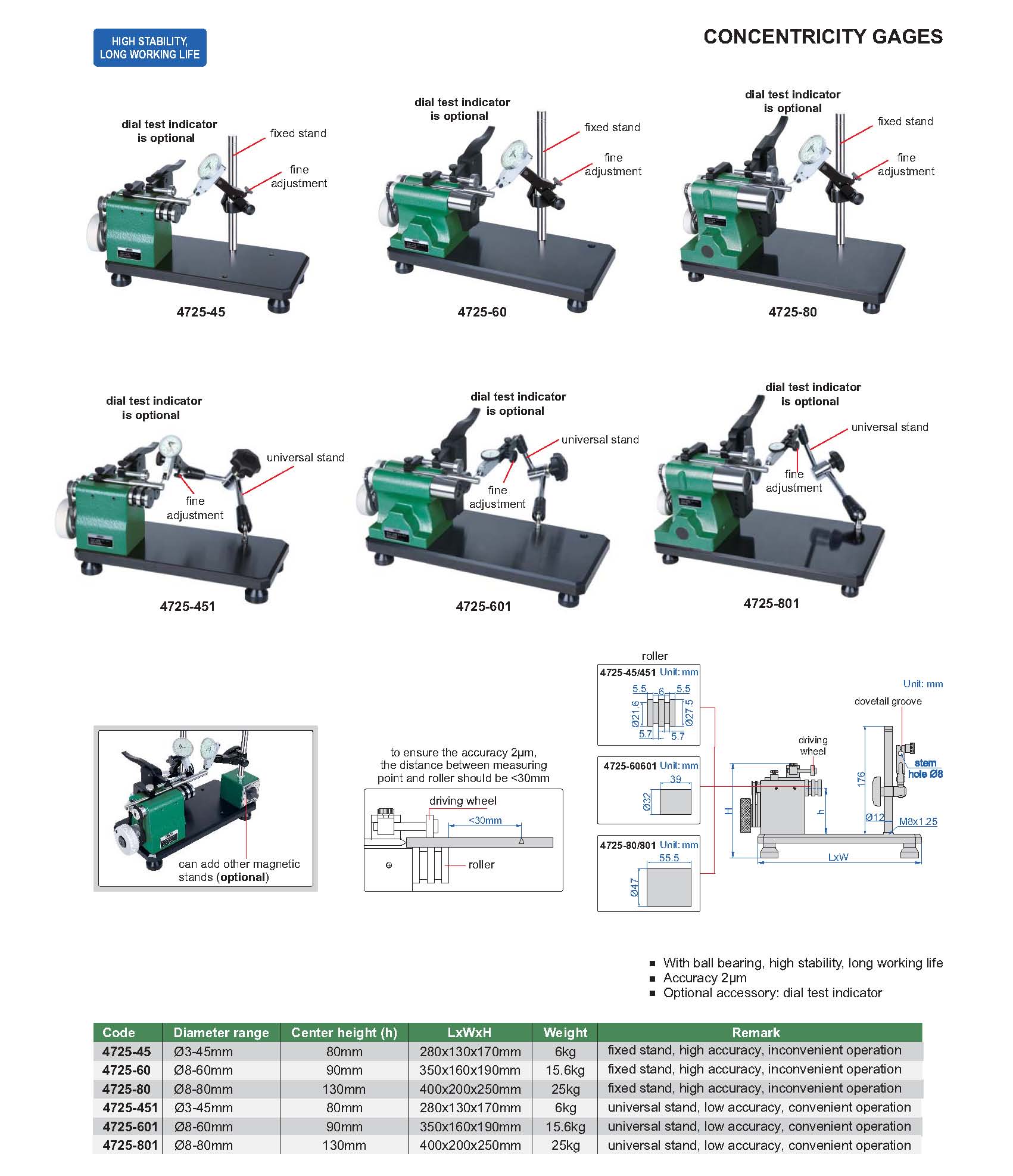 | 4725-80 | Ø8-80mm | 2µm | fixed stand, good rigidity |
