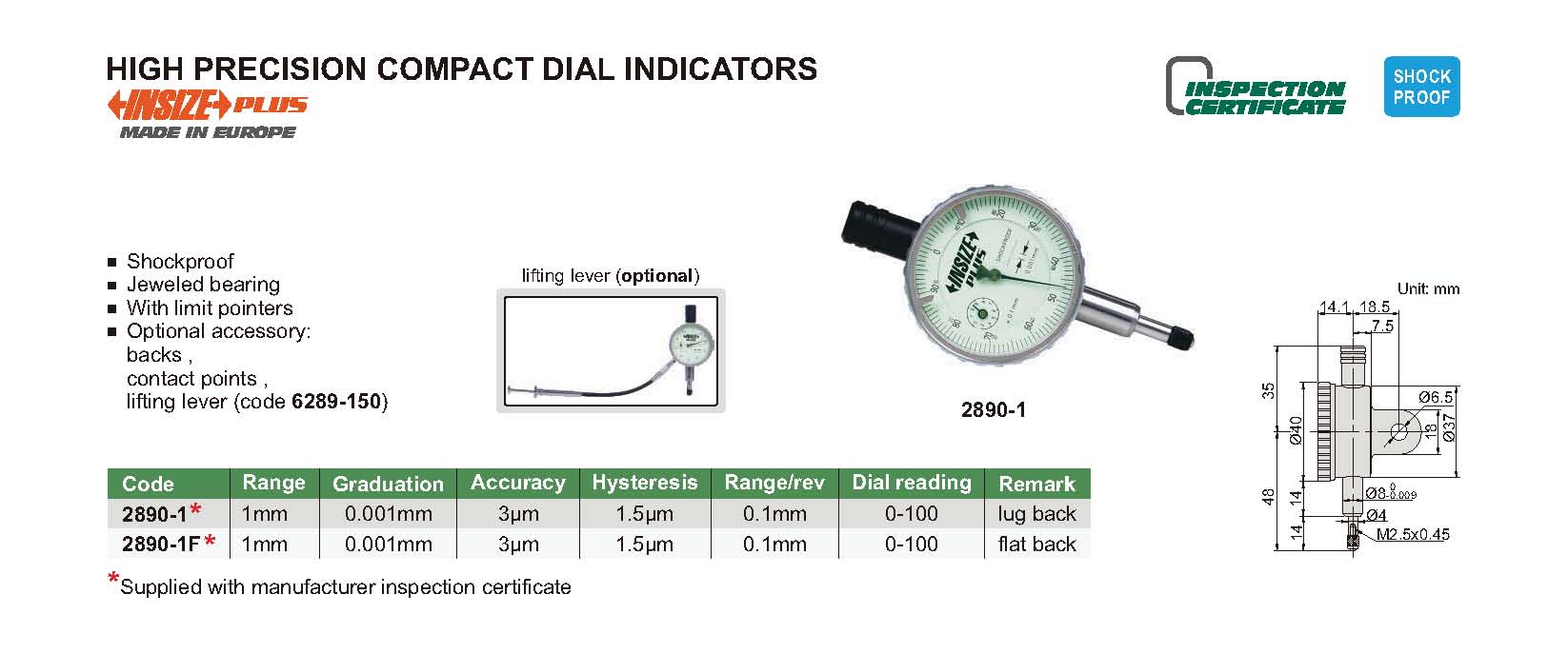 2890-1F 1mm 3µm 0.001mm