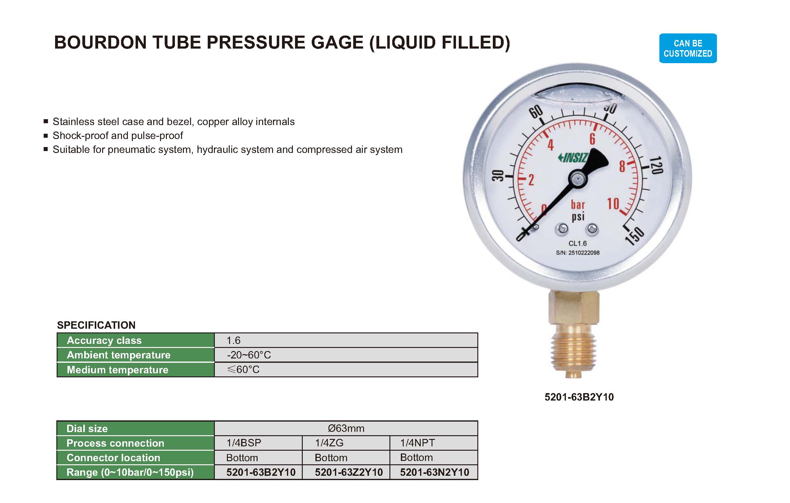 | 5201 | 1/4BSP, 1/4ZG, 1/4NPT | Ø63mm | bottom | polycarbonate |