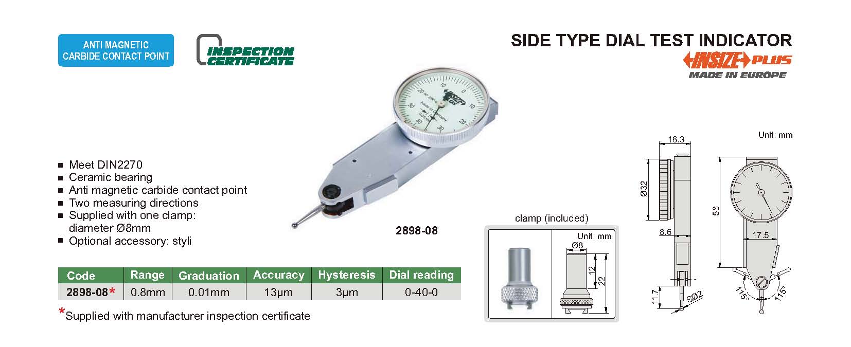 2898-08 0.8mm 13µm 0.01mm