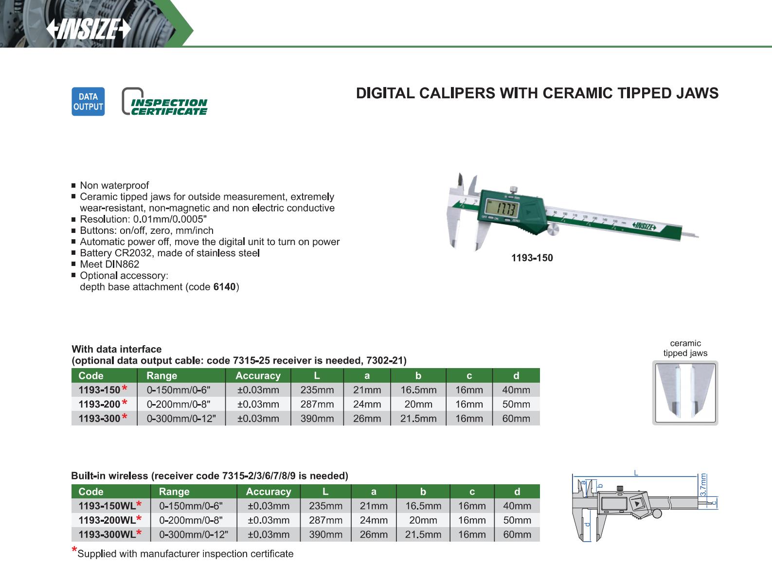 | 1193-300WL | 0-300mm/0-12" | ±0.03mm | 0.01mm/0.0005" | built-in wireless |