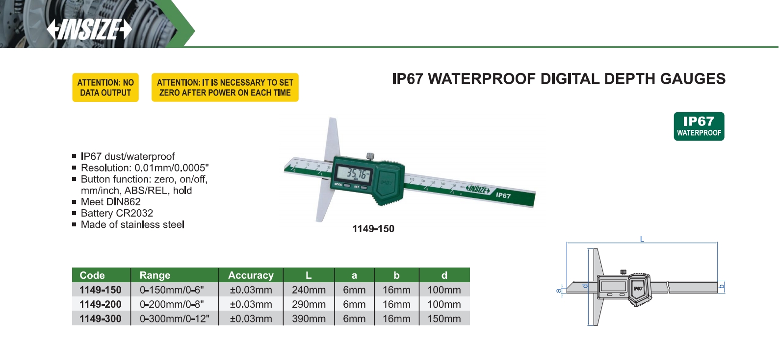 | 1149-150 | 0-150mm/0-6" | ±0.03mm | 0.01mm/0.0005" | without data interface |