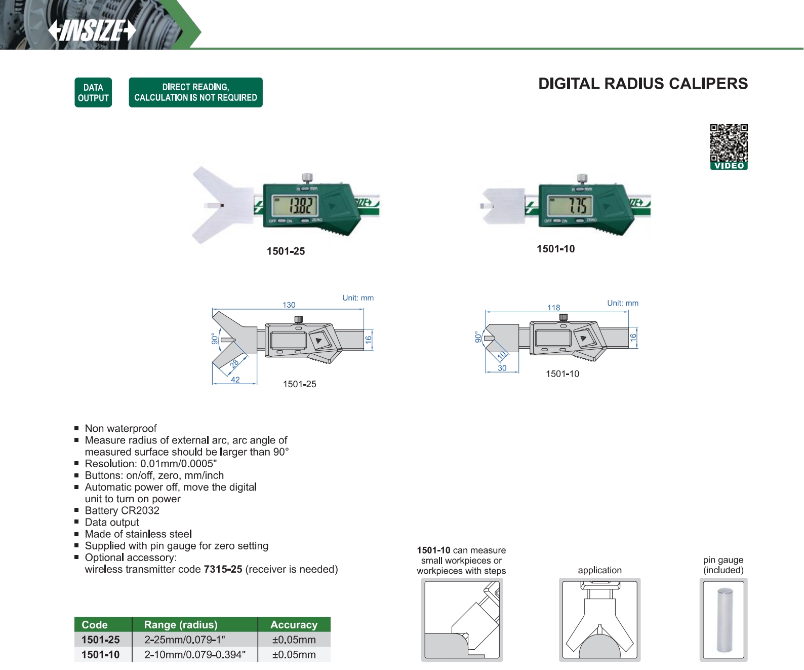 | 1501-25 | 2-25mm/0.079-1" | ±0.05mm | 0.01mm/0.0005" |