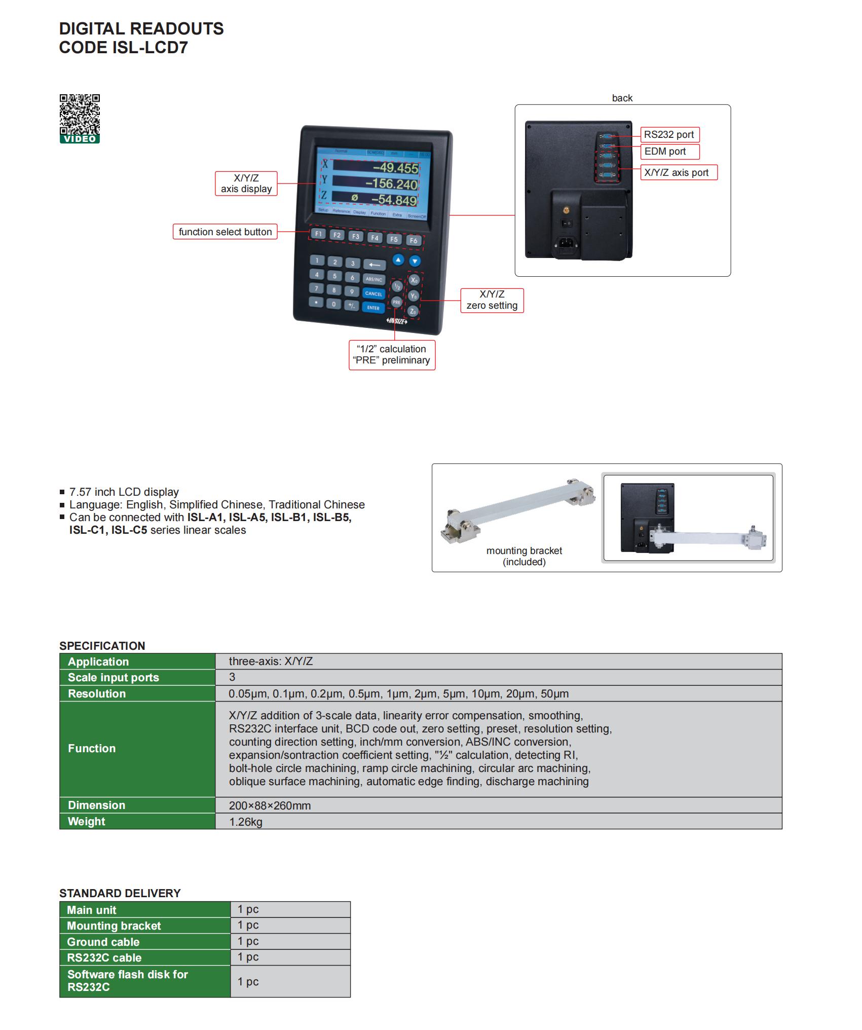 | ISL-LCD7 | three-axis: X/Y/Z | Optical linear scales | 0.05μm, 0.1μm, 0.2μm, 0.5μm, 1μm, 2μm, 5μm, 10μm, 20μm, 50μm | 3 |