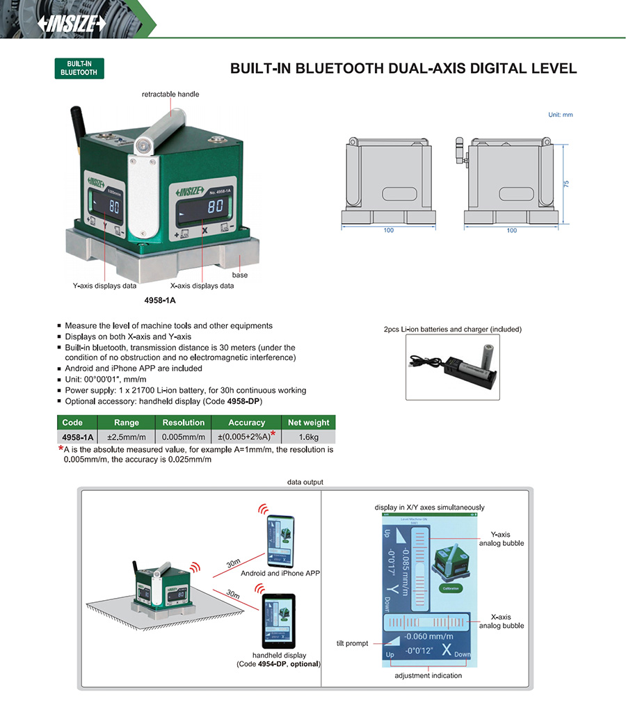 4958-1A ±2.5mm/m ±(0.005+2%A) 0.005mm/m