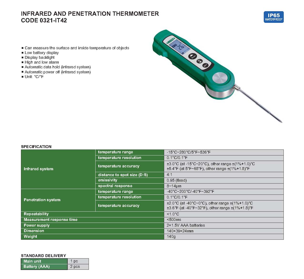 | 0321-IT42 | -15°C~280°C/ 5°F~536°F | 4:1 | no |