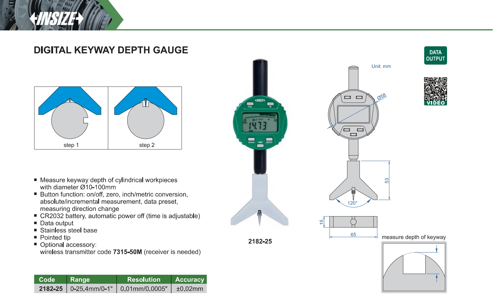 Measure keyway depth of cylindrical workpieces with diameter Ø10-100mm