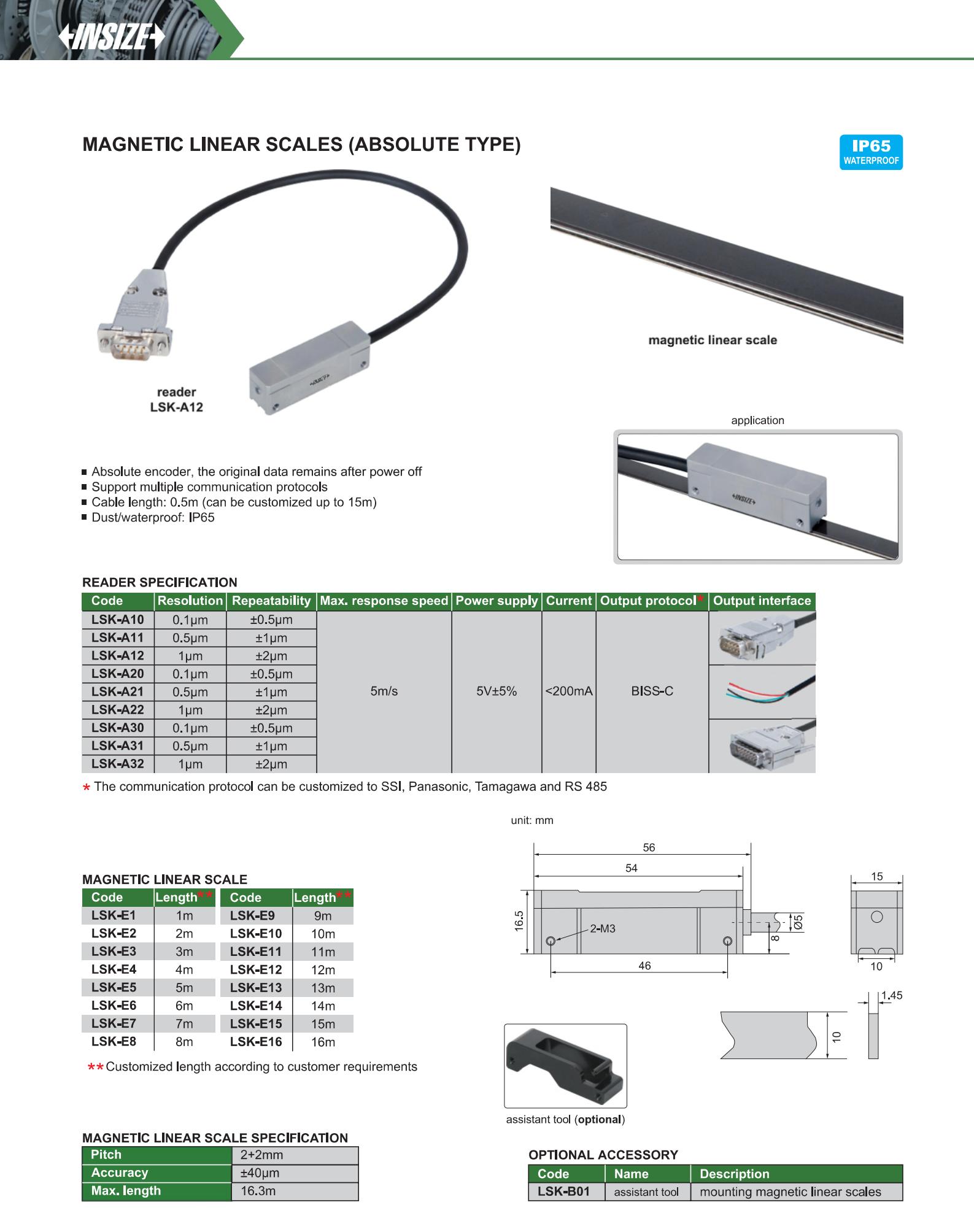 | LSK-A20 | Magnetic linear | 0.1µm | ±0.5µm | direct lead-out |