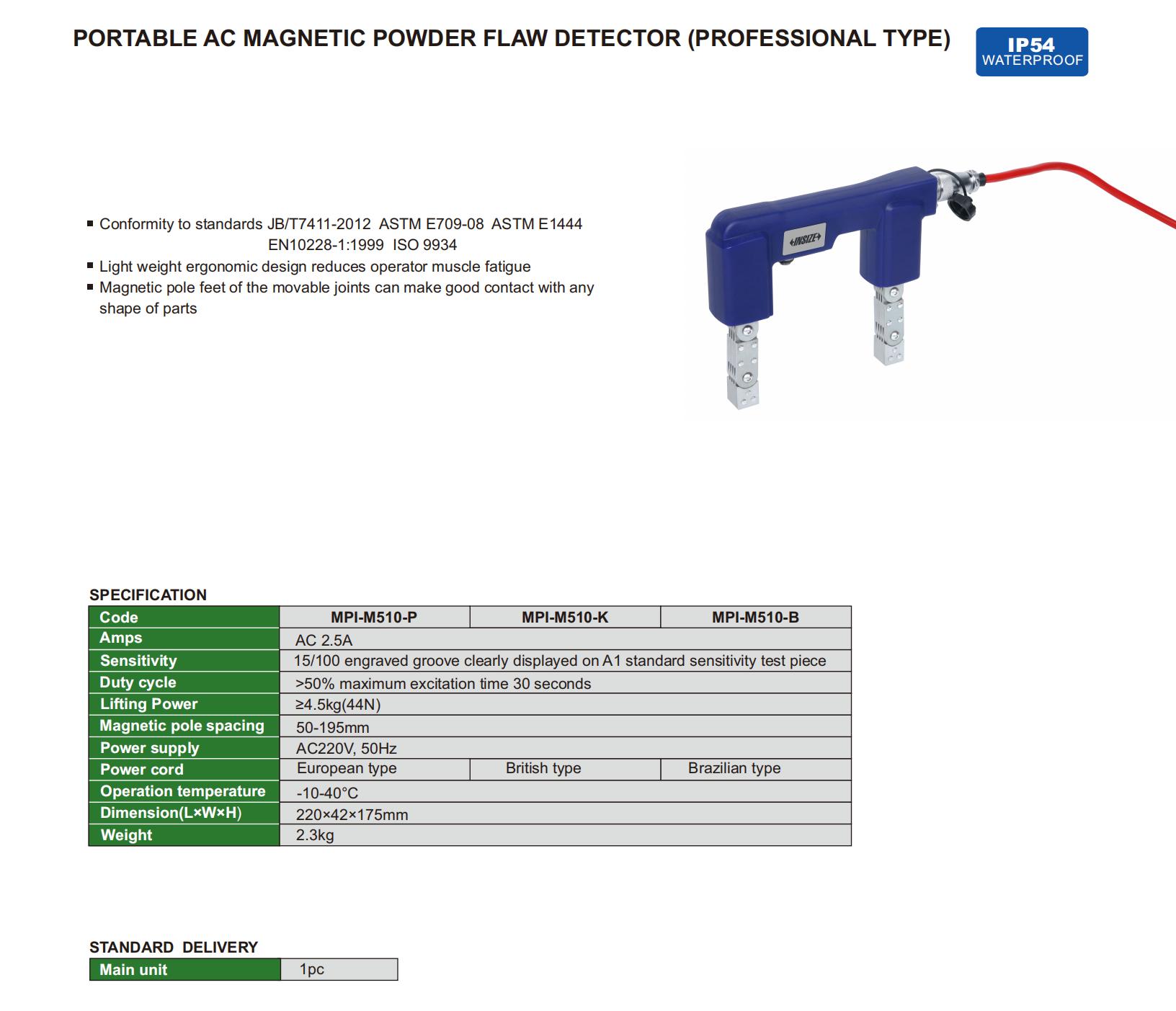 | MPI-M510-B | 15/100 engraved groove clearly displayed on A1 standard sensitivity test piece | ≥4.5kg (44N) | 50-195mm |