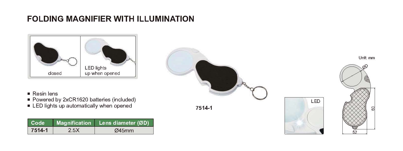 Powered by 2xCR1620 batteries (included)