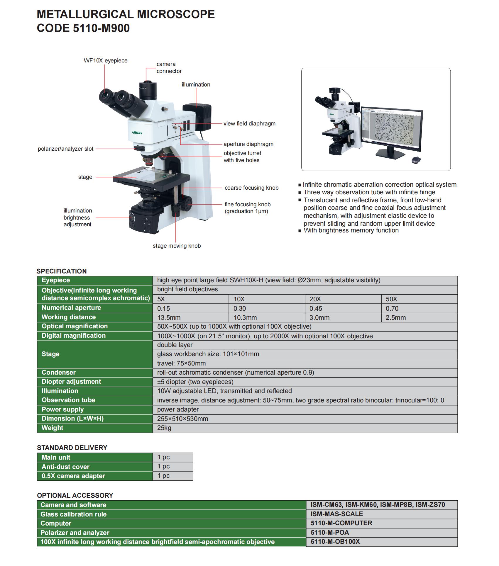 | 5110-M900 | glass workbench size: 101×101mm, travel: 75×50mm | 50X~500X | high eye point large field SWH10X-H | bright field |