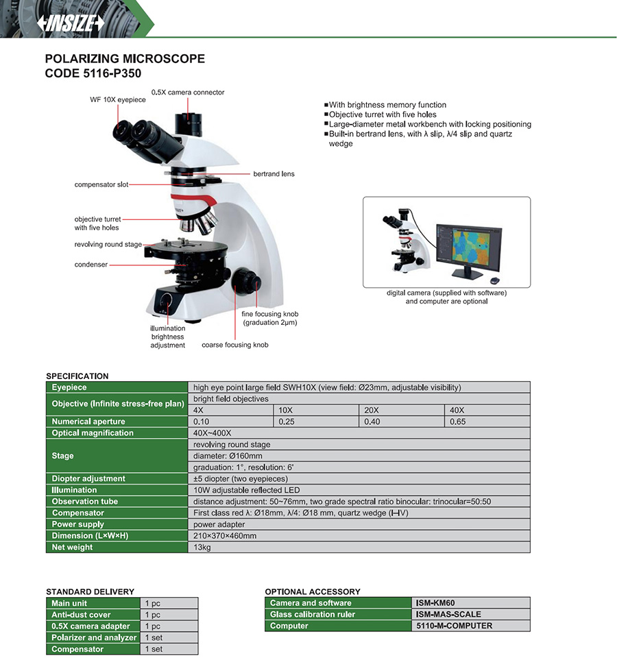 5116-P350 diameter: Ø160mm,graduation: 1°, resolution: 6' 40X~400X high eye point large field SWH10X bright field