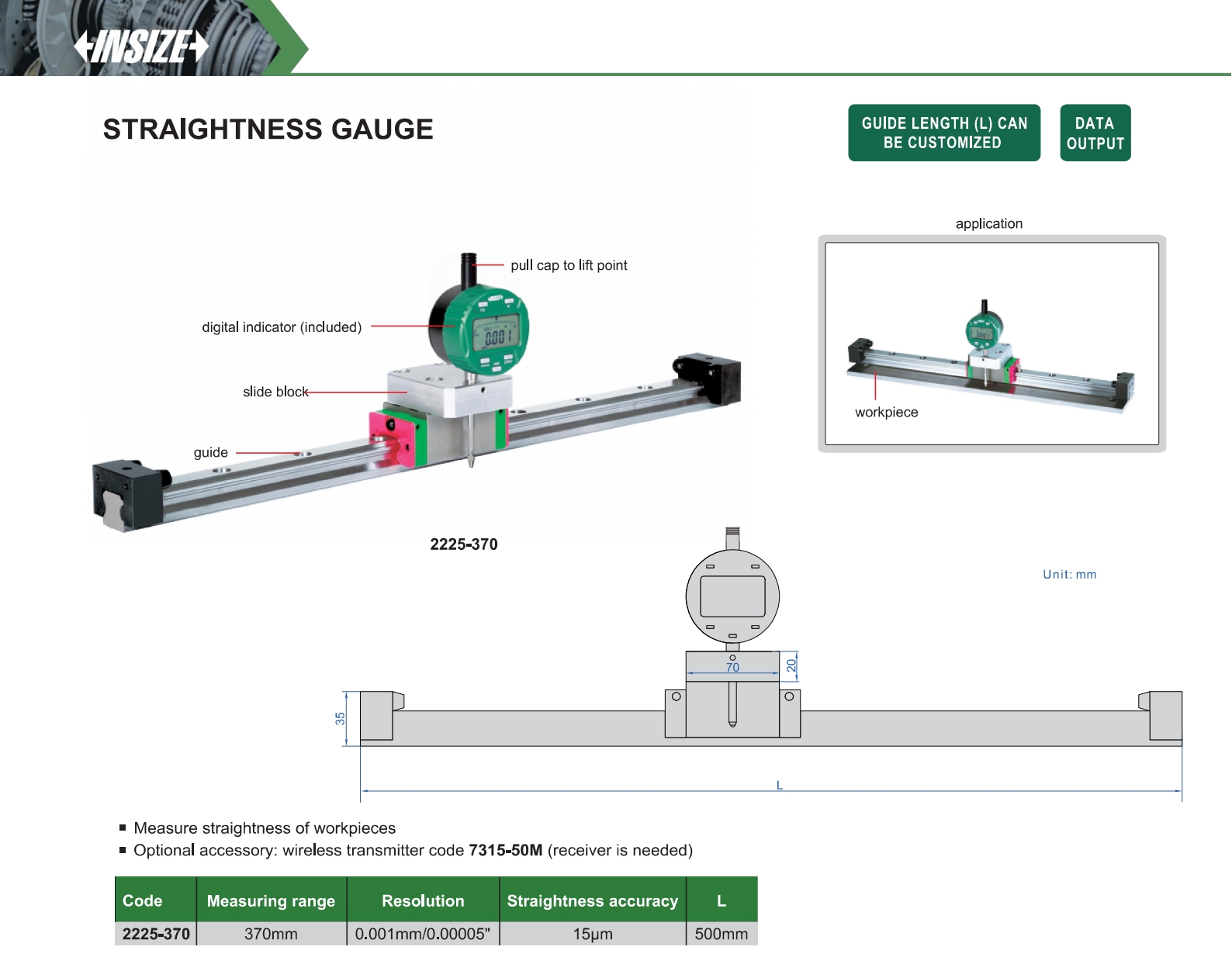 | 2225-370 | 370mm | 0.001mm/0.00005" | 15µm |