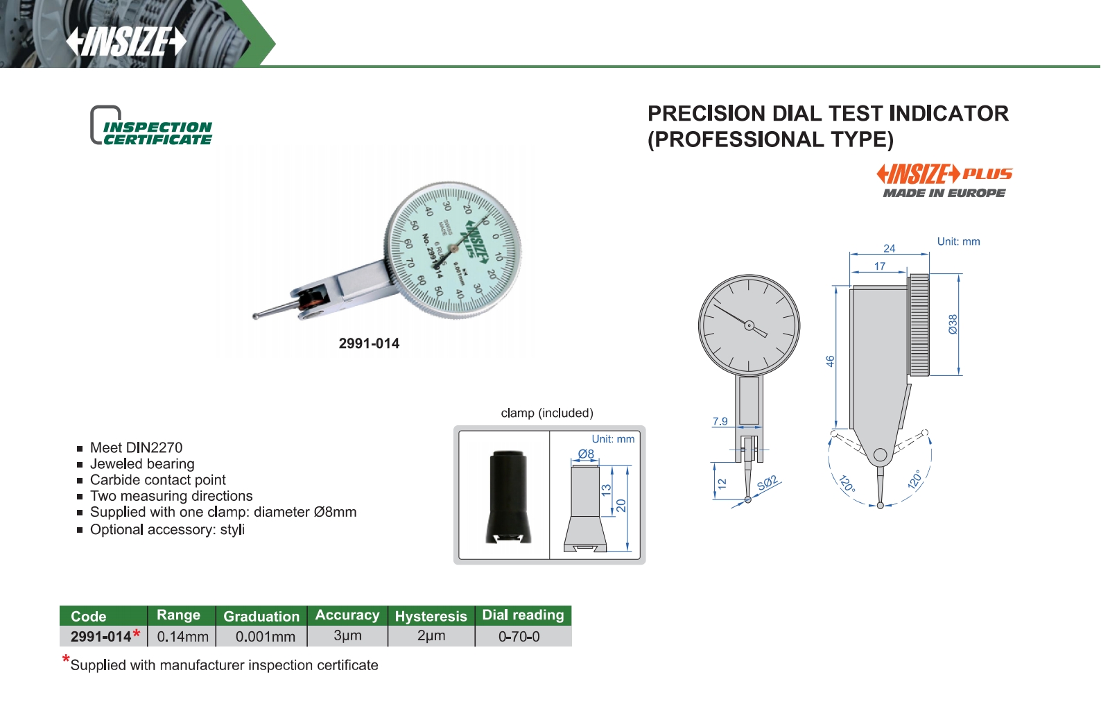 | 2991-014 | 0.14mm | 3μm | 0.001mm |