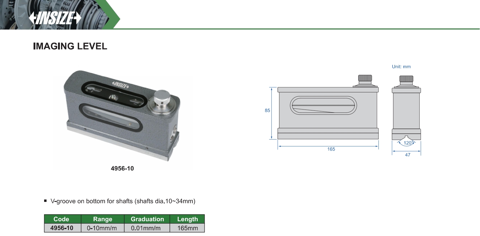 V-groove on bottom for shafts Ø10~34mm