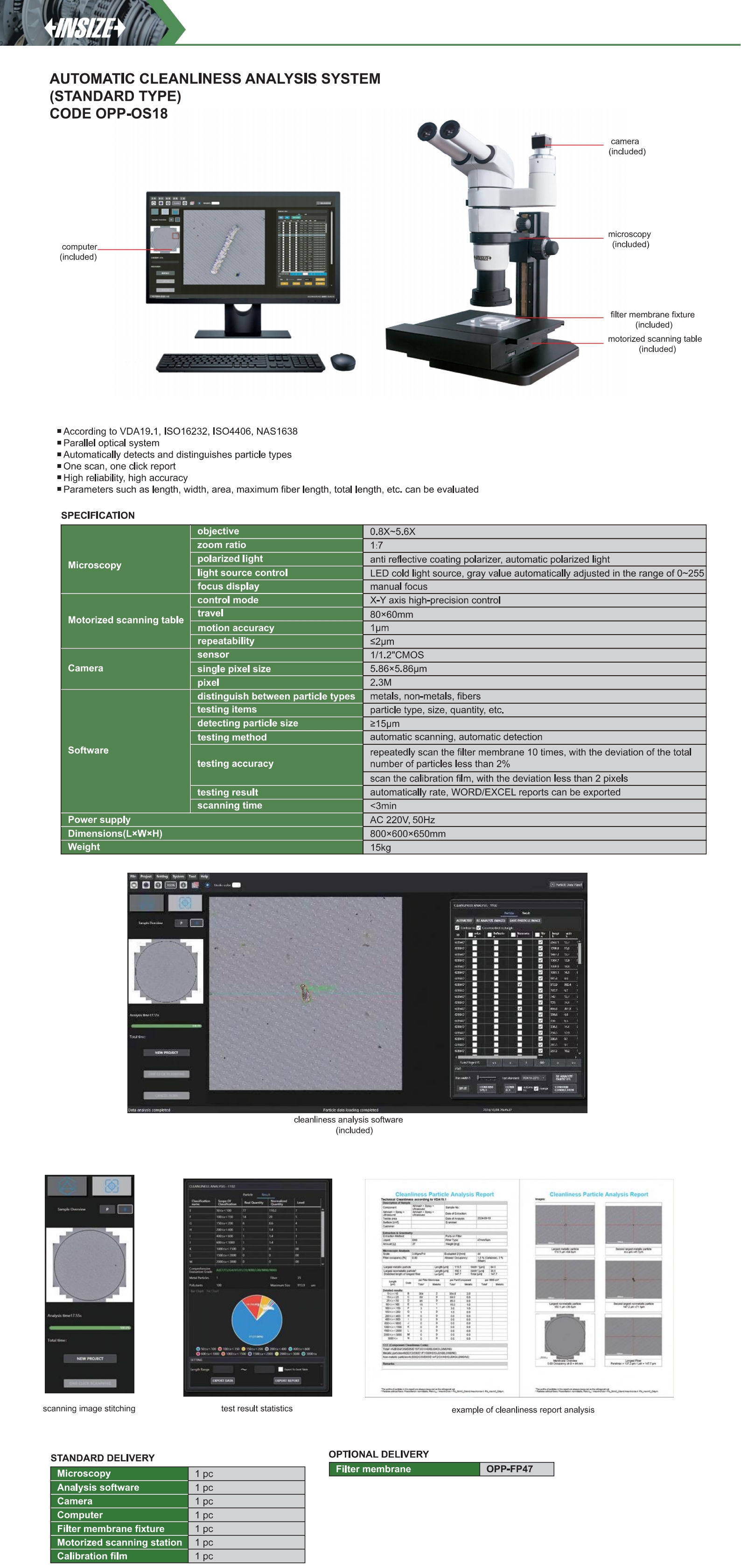 According to VDA19.1, ISO16232, ISO4406, NAS1638