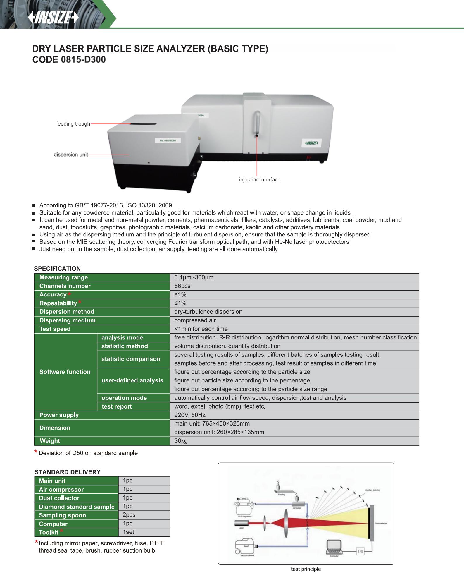 | 0815-D300 | 0.1μm~300μm | ≤1% |