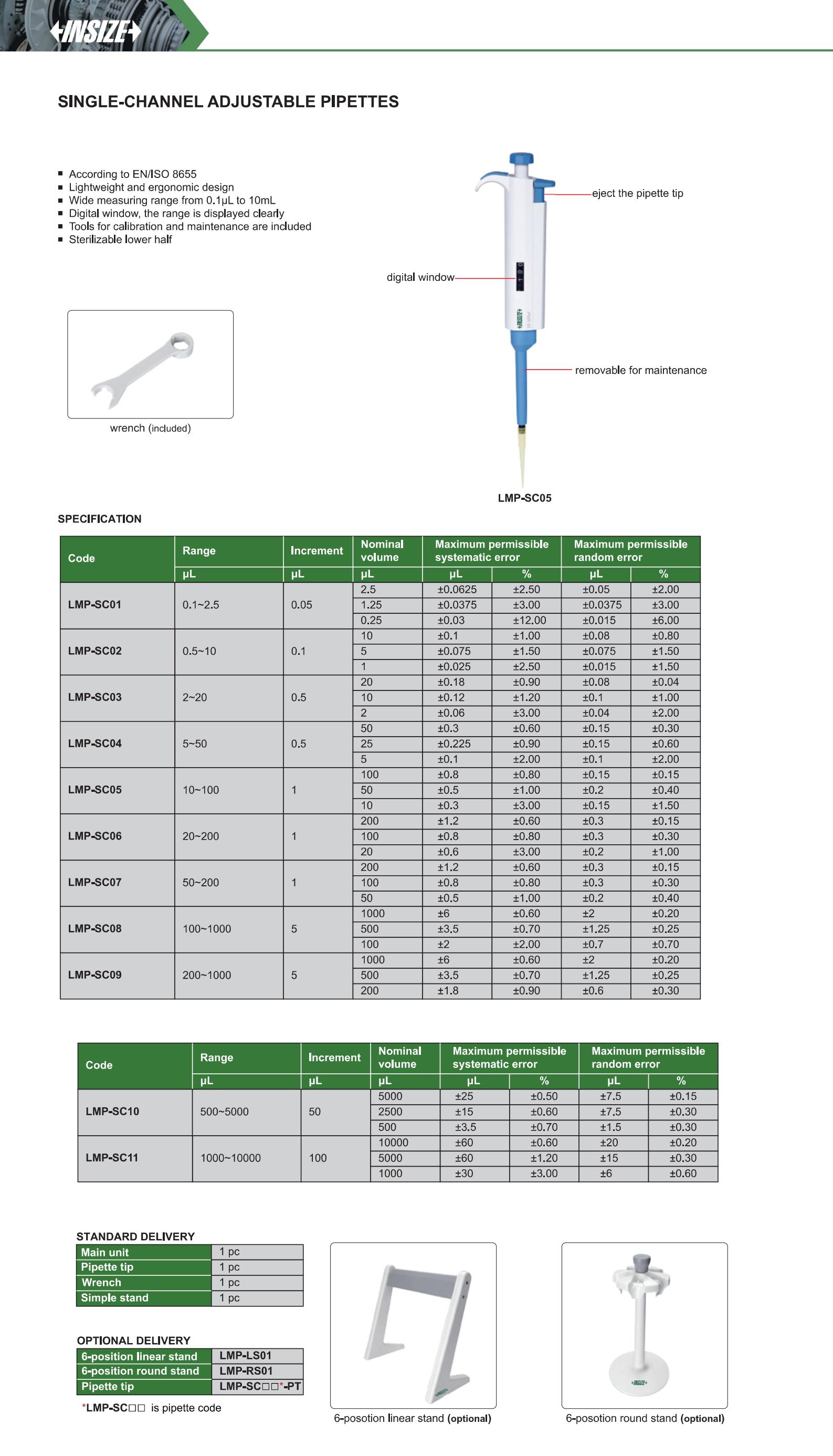 | LMP-SC10 | Volume | 500~5000μL | 50μL | no |