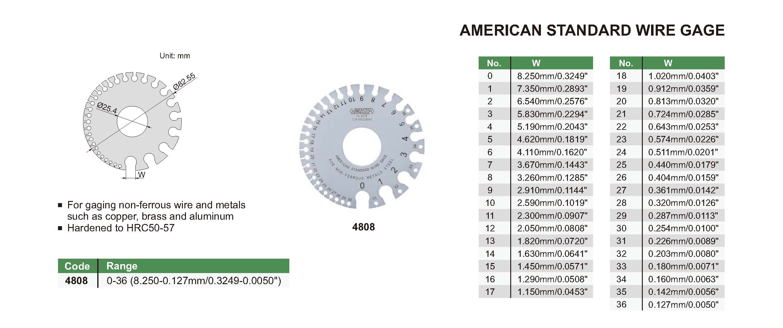 For gaging non-ferrous wire and metals such as copper, brass and aluminum