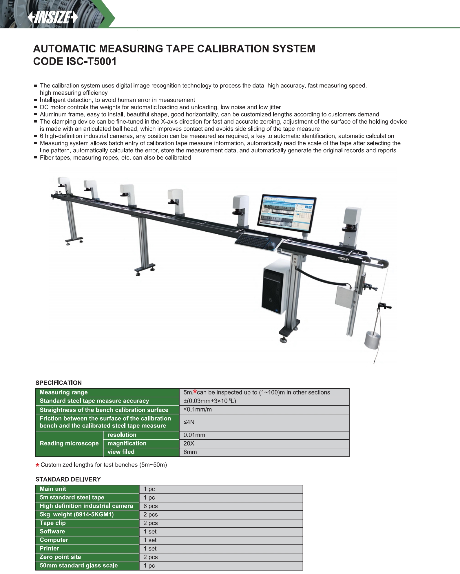 | ISC-T5001 | 5m, Customized lengths for test benches | ≤0.1 mm/m | ±(0.03 mm + 3×10⁻⁵L) |