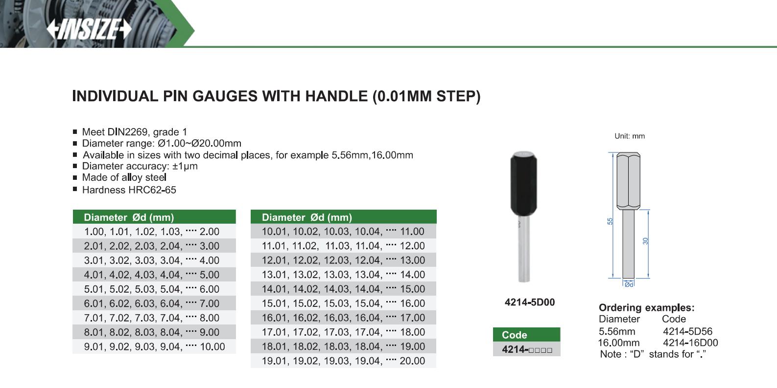 Diameter range: Ø1.00~Ø20.00mm
