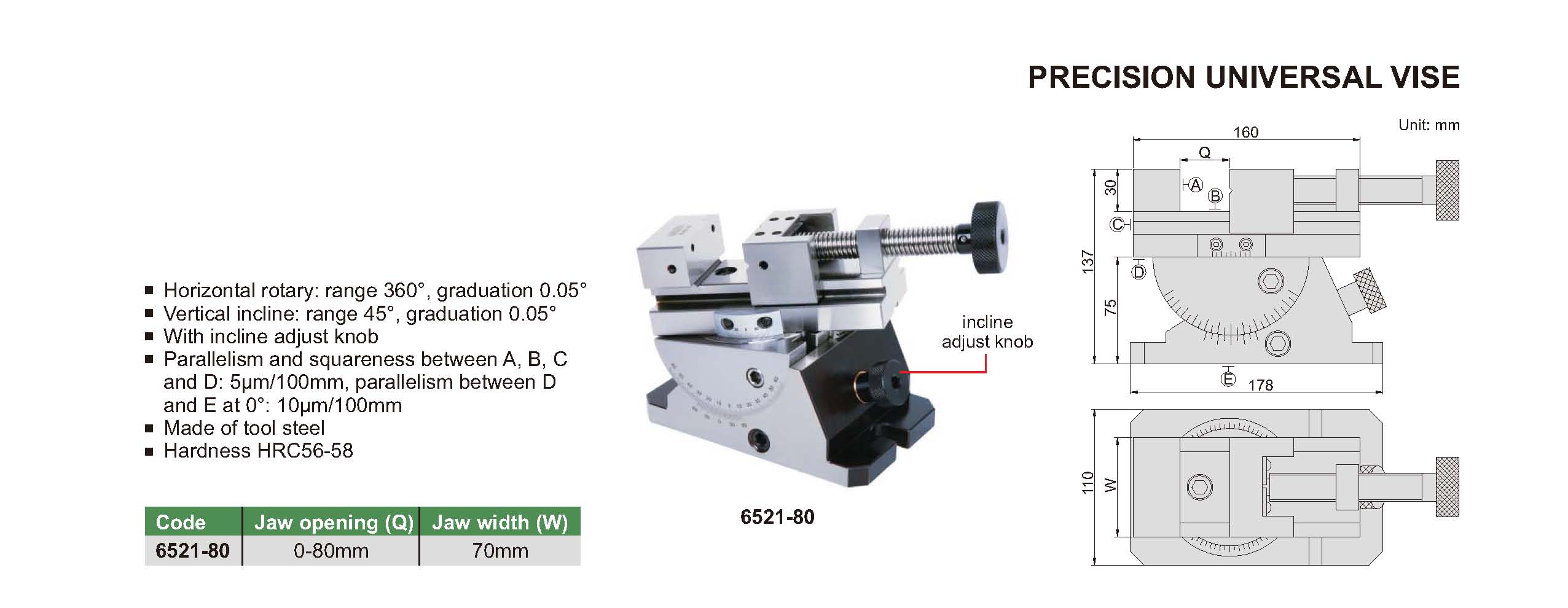 | 6521-80 | 0-80mm | 70mm | 5μm/100mm | 5μm/100mm |