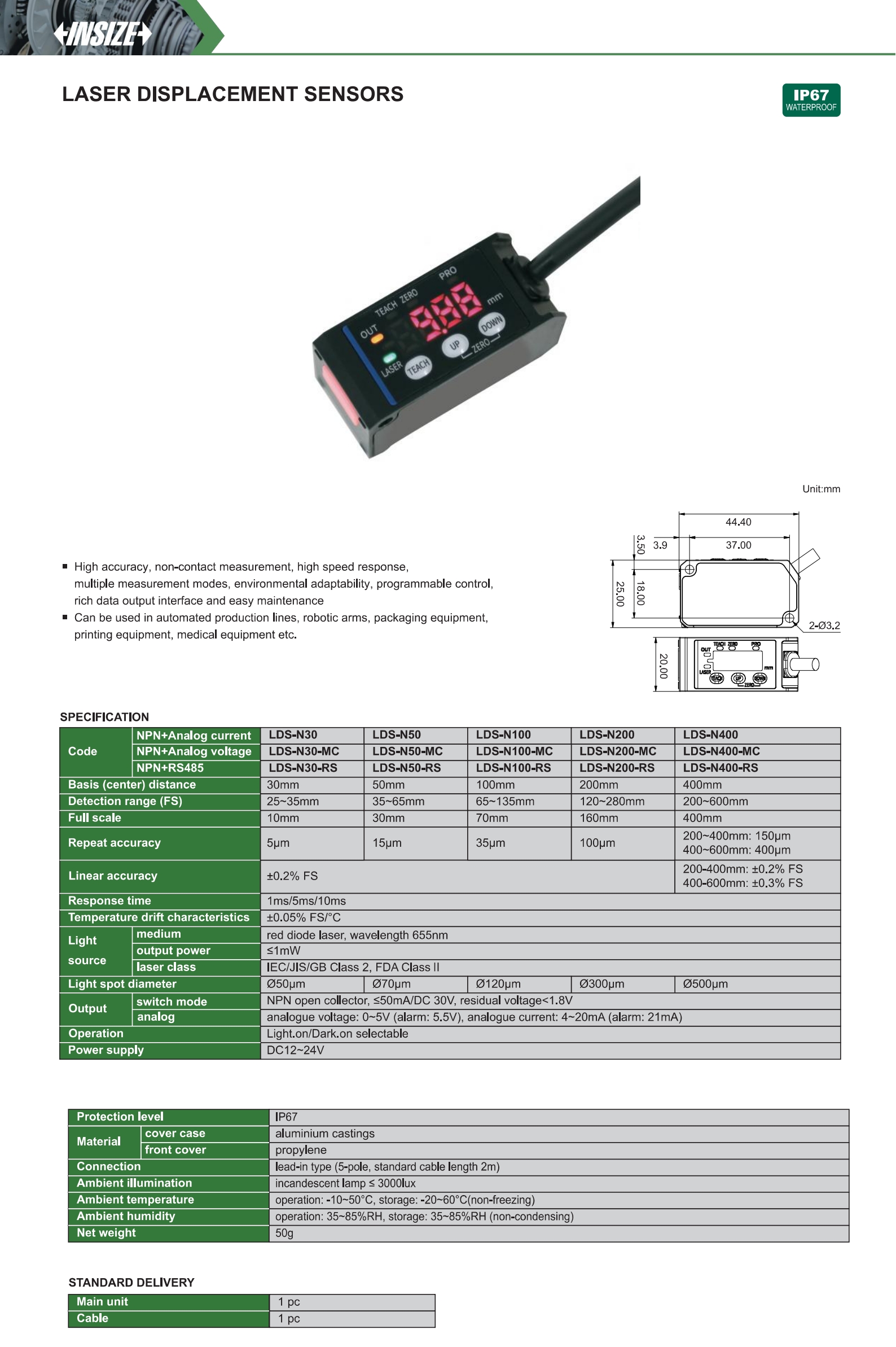 | LDS-N50 | Laser | 35~65mm | ±0.2%FS |