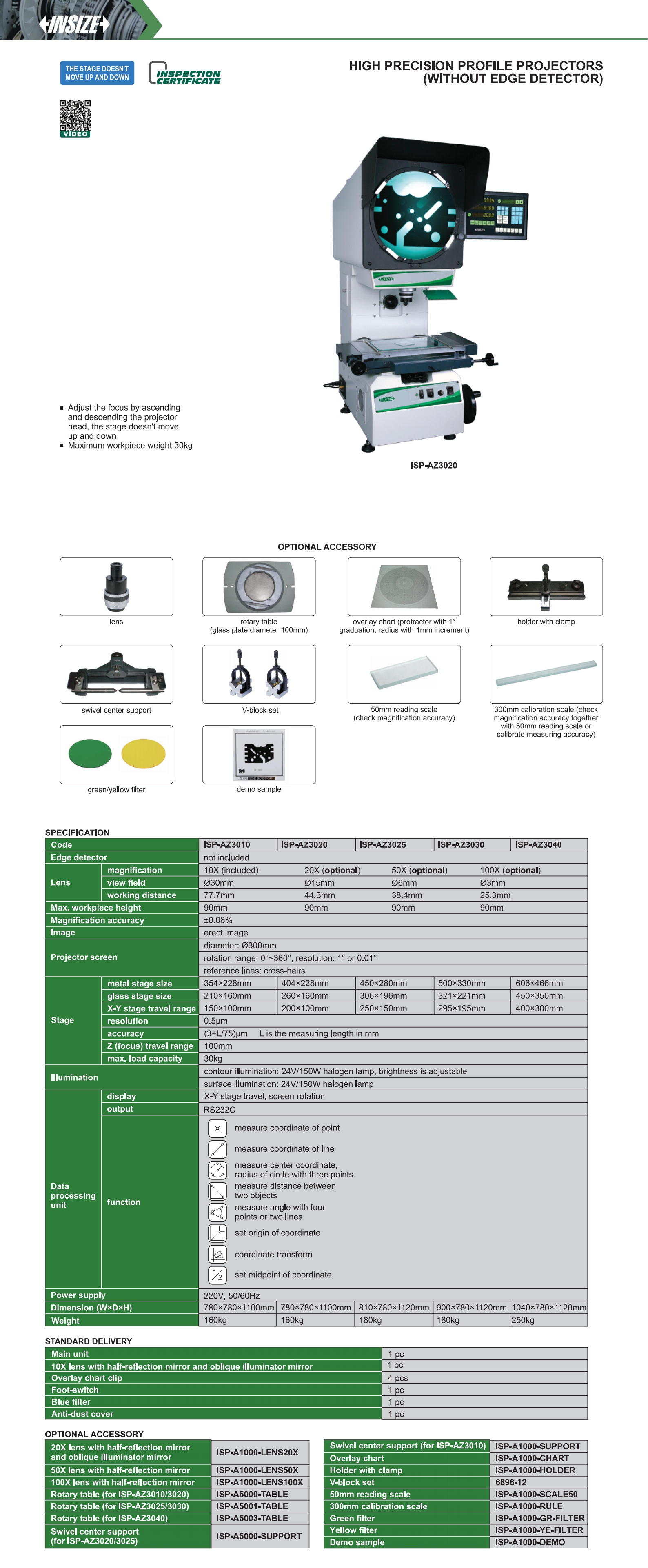 | ISP-AZ3020 | vertical | 200×100mm | (3+L/75)µm | 0.5µm | not included | Ø300mm | erect image |