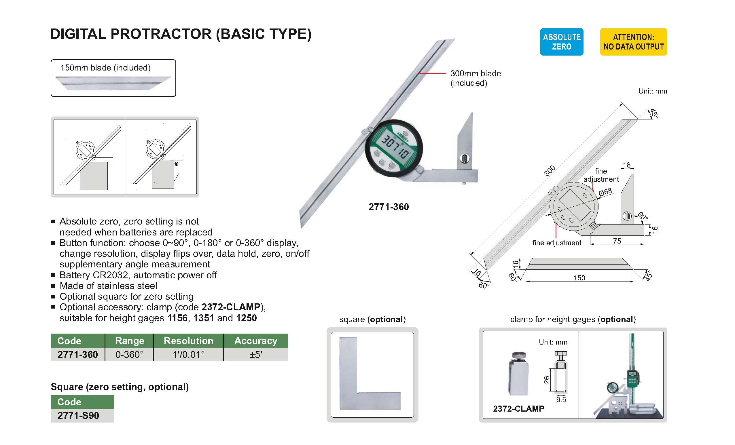 | 2771-360 | 0-360° | ±5' | 1'/0.01° |