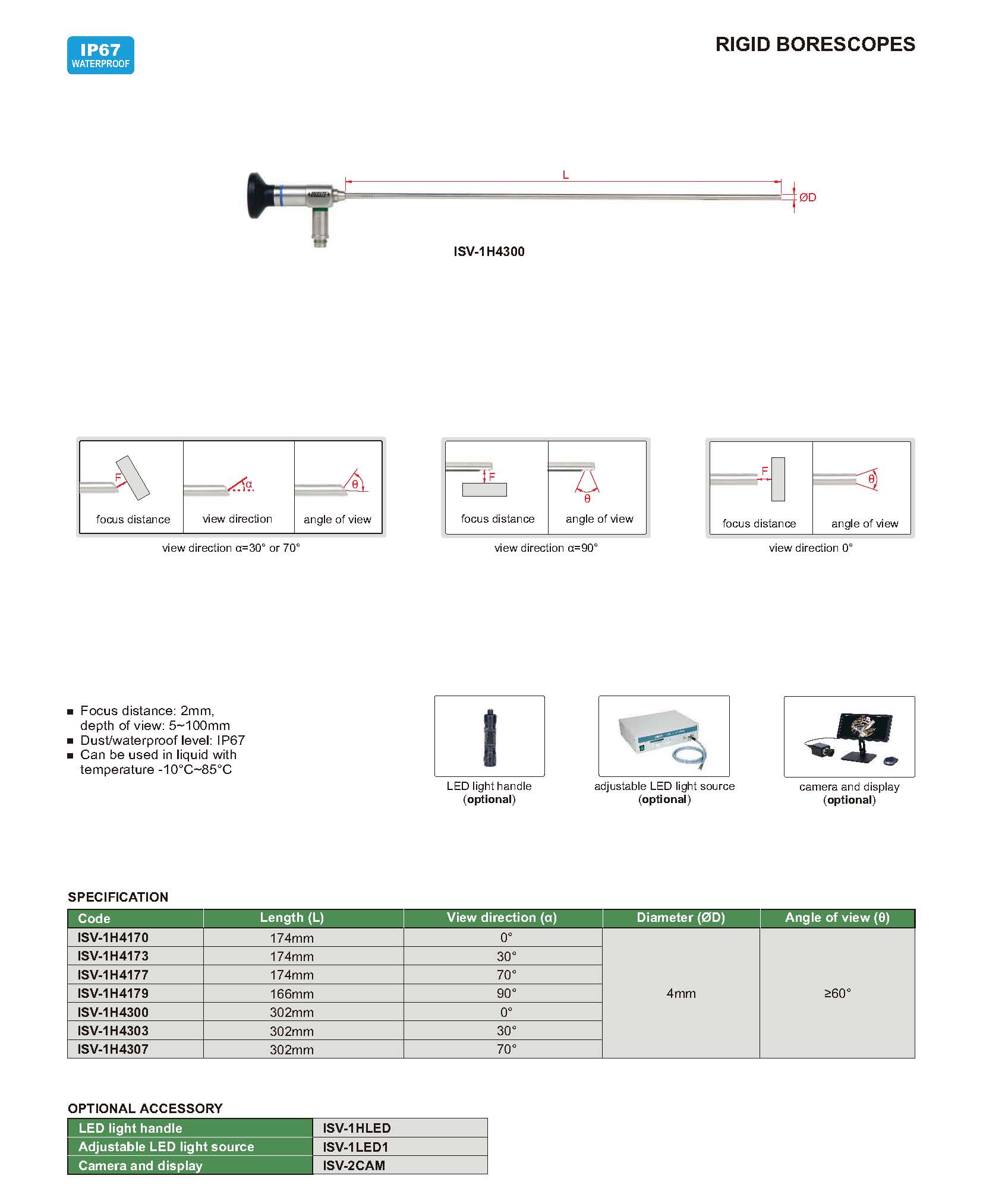 | ISV-1H4170 | rigid | 0° | 4mm | 174mm | ≥60° |