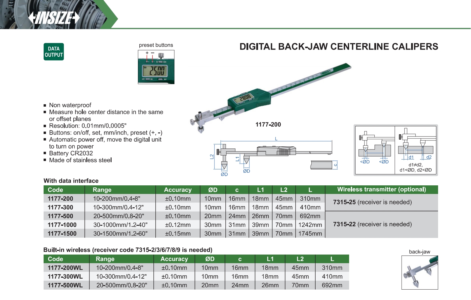 | 1177-200 | 10-200mm/0.4-8" | ±0.10mm | 0.01mm/0.0005" | with data interface |