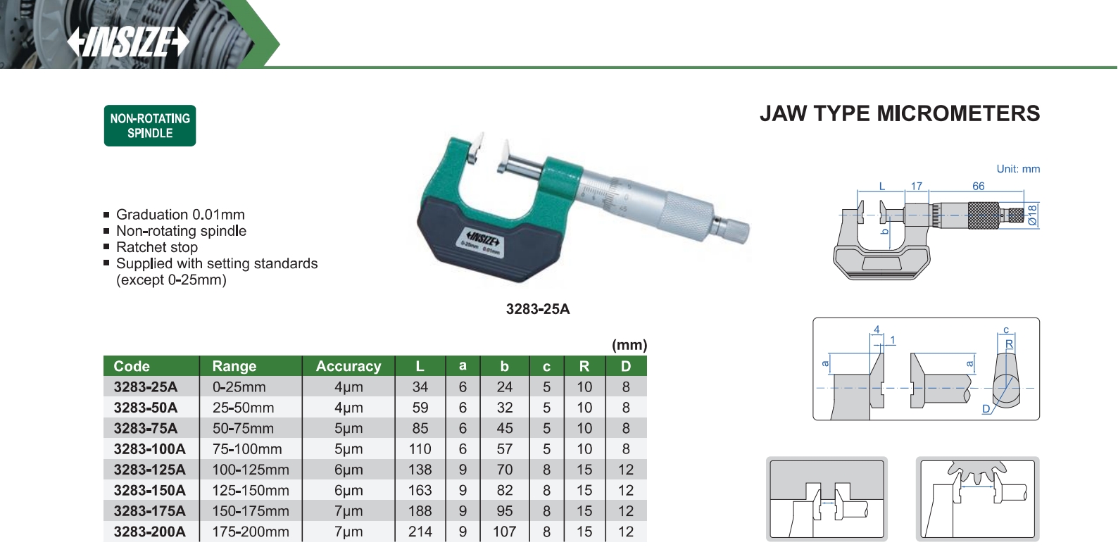 | 3283-125A | 100-125mm | 6μm | 0.01mm |