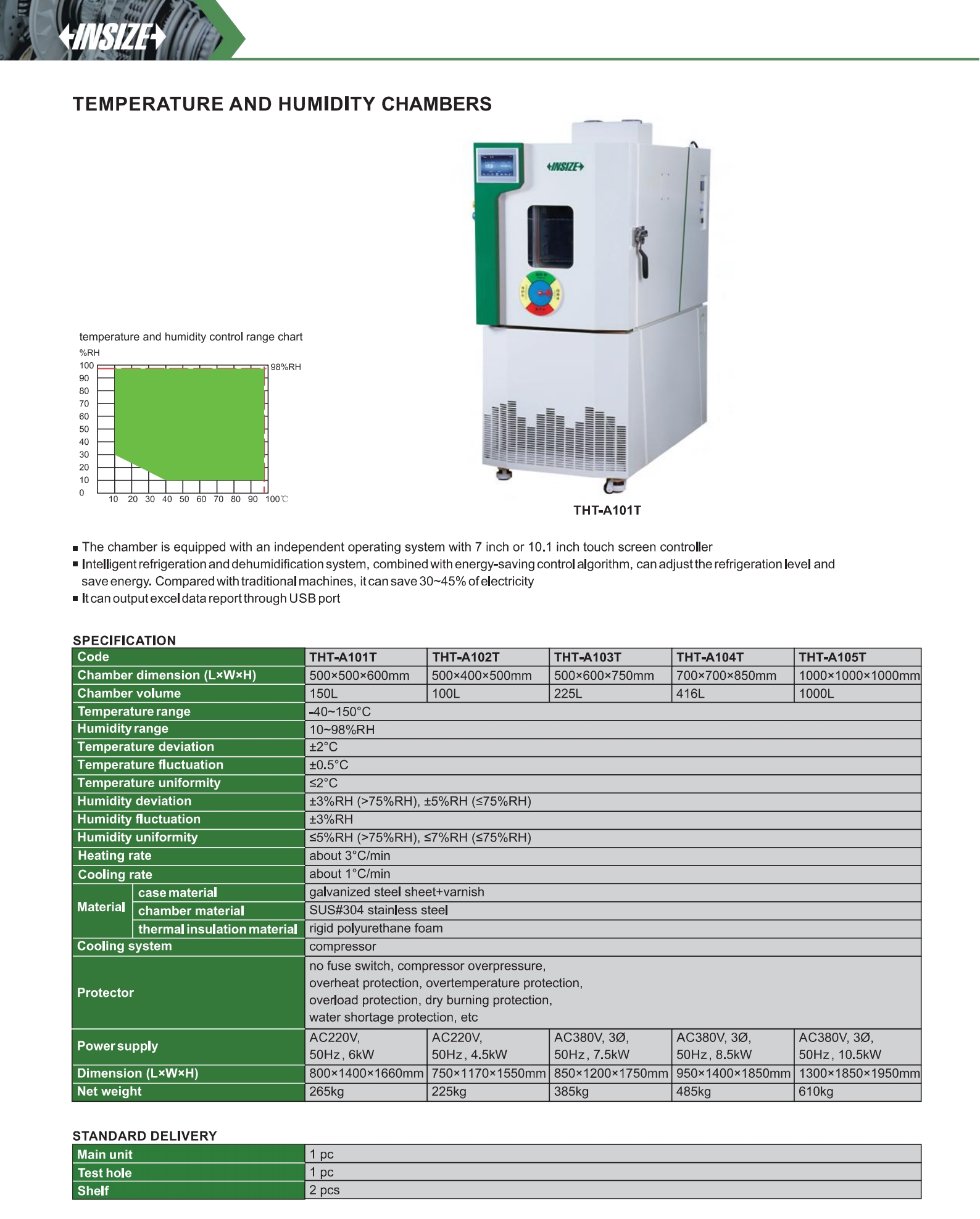 | THT-A102T | 500×400×500mm | 10~98%RH | ≥1℃/min |