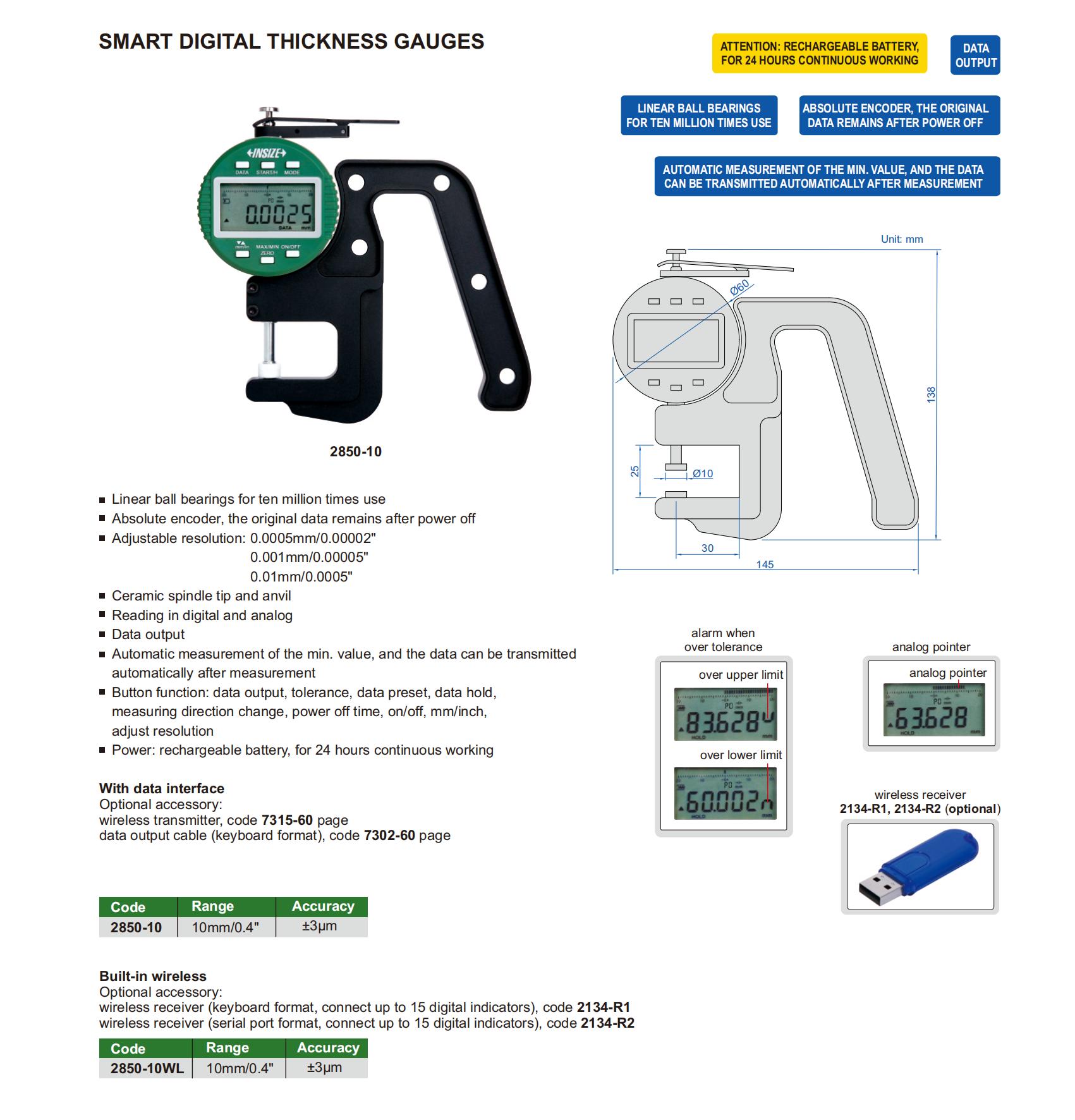 | 2850-10 | 10mm/0.4" | ±3µm | 0.0005mm/0.00002" |