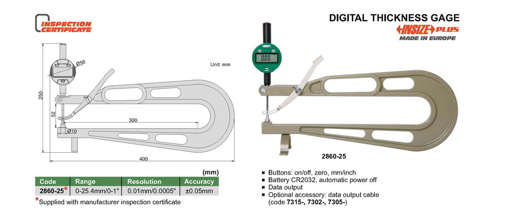 | 2860-25 | 0-25.4mm/0-1" | ±0.05mm | 0.01mm/0.0005" |