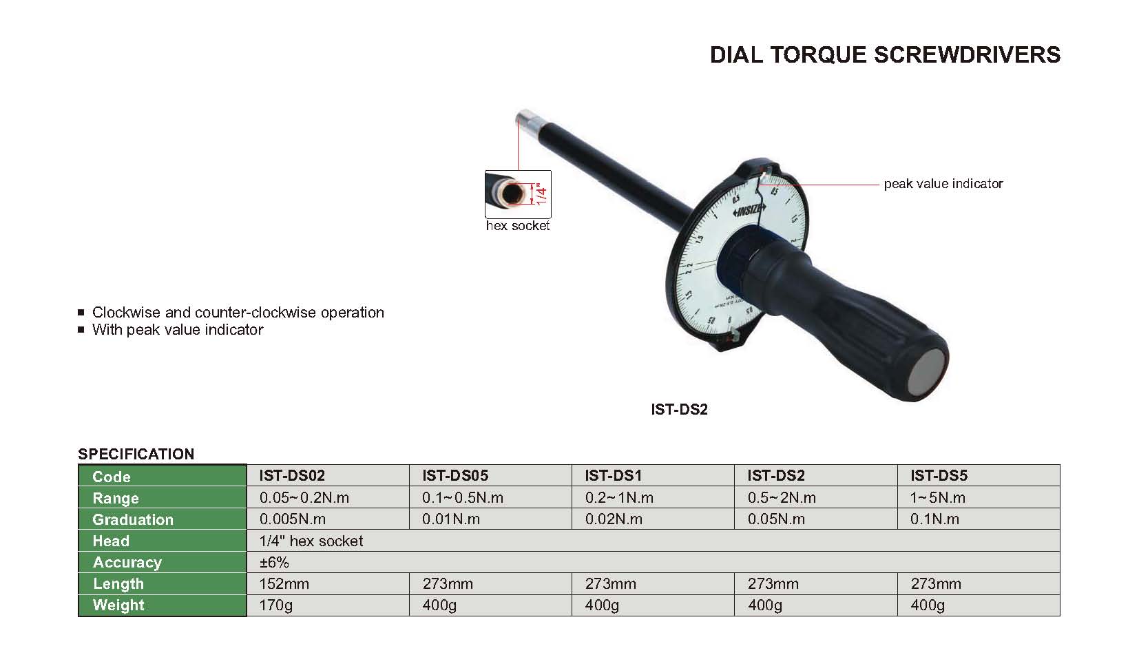 | IST-DS5 | Dial | 1~5N.m | No transmission | Engraved-line |