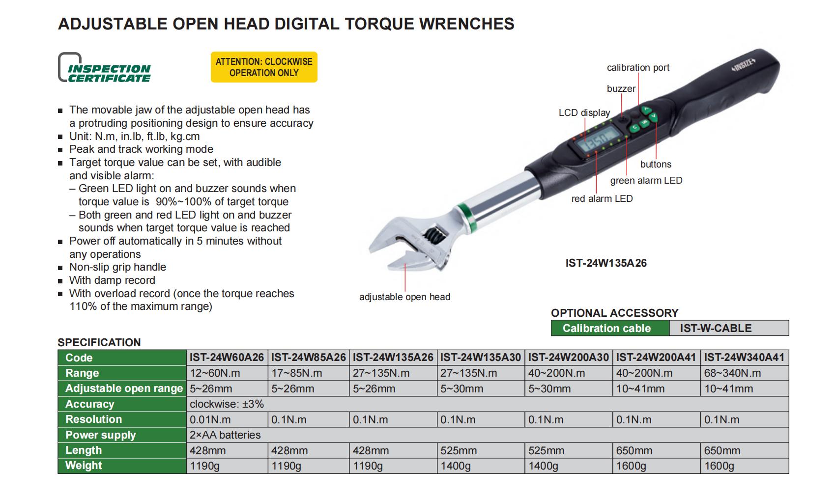 | IST-24W135A26 | Digital | 27~135N.m | No transmission | Digital display | Adjustable open head |