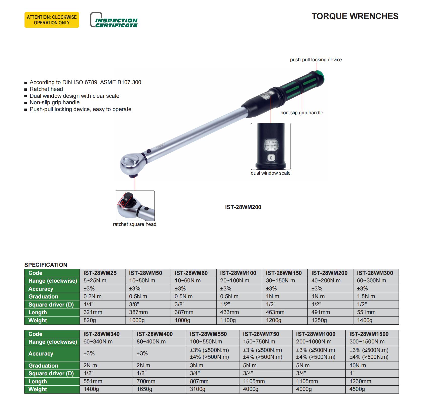 | IST-28WM340 | Mechanical Preset | 60~340N.m | Window design | Fixed ratchet head |