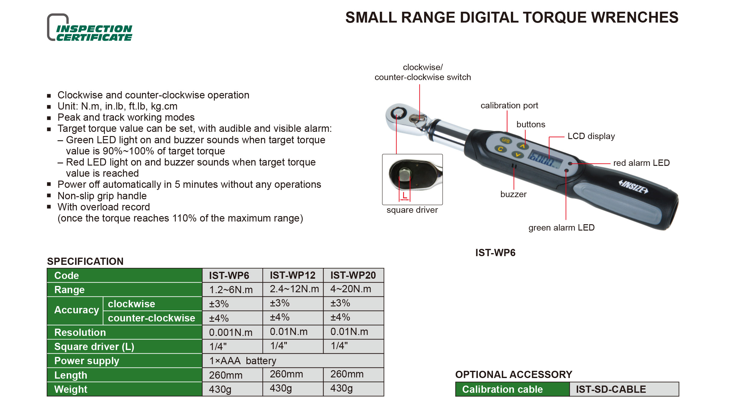 | IST-WP20 | Digital | 4~20N.m | No transmission | Digital display | Fixed ratchet head |