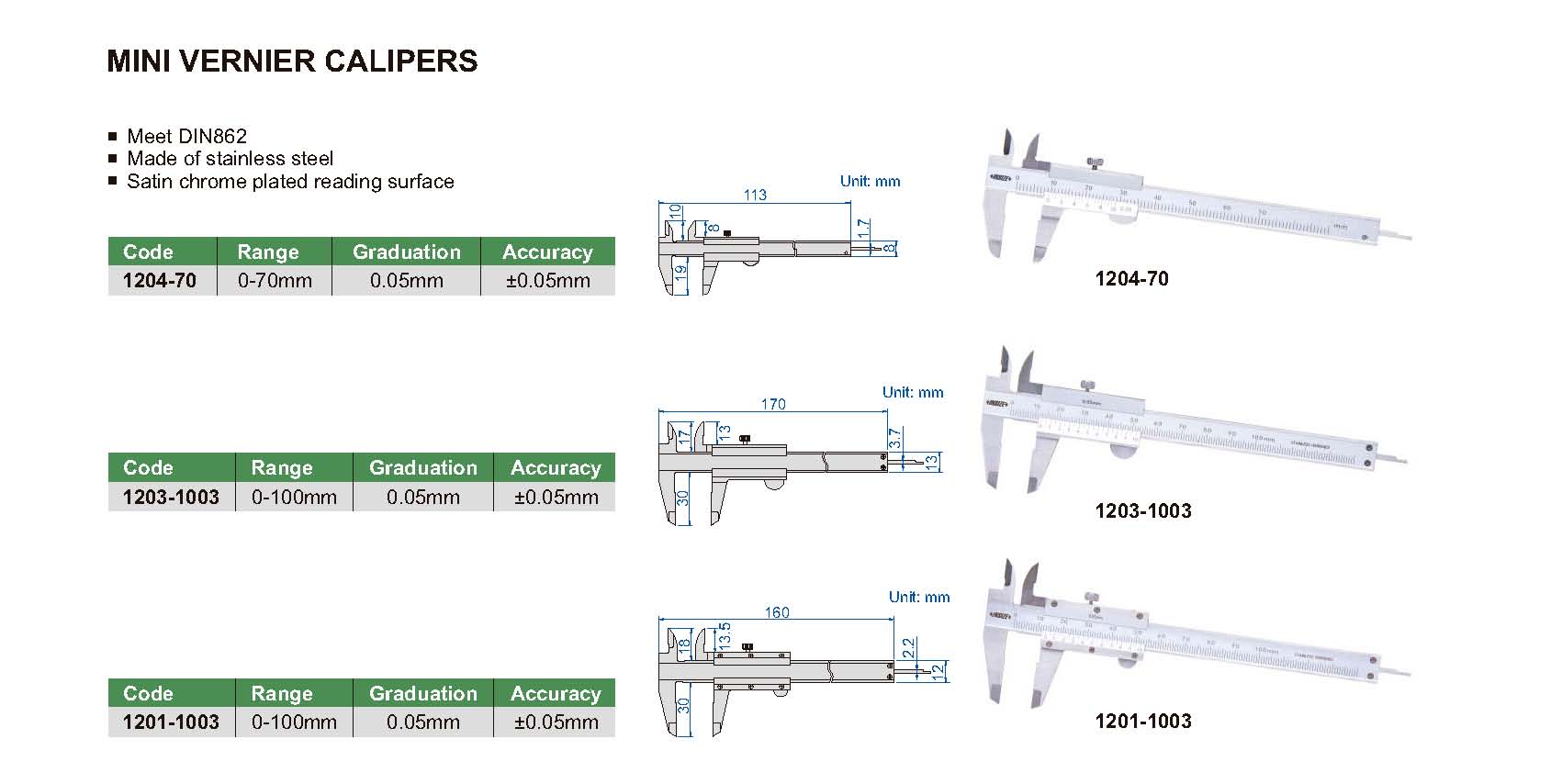| 1201-1003 | 0-100mm | ±0.05mm | 0.05mm |