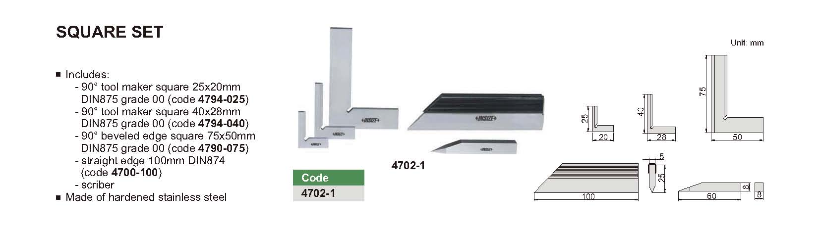90° tool maker square 25x20mm DIN875 grade 00 (code 4794-025)
