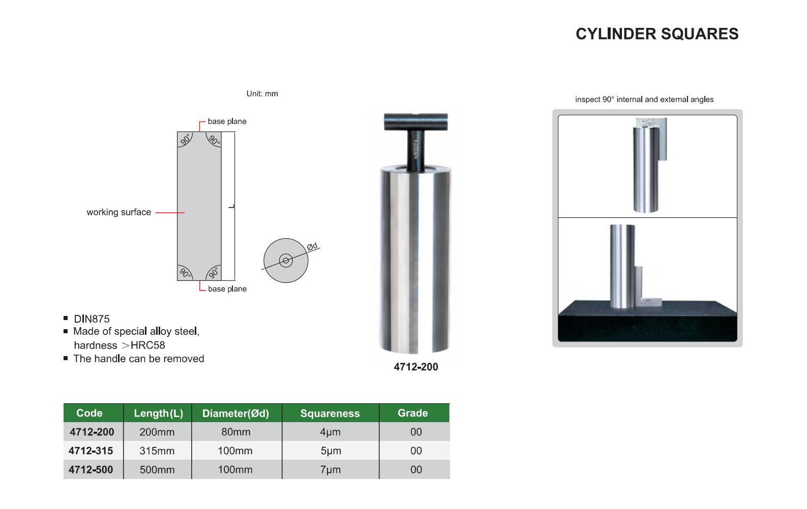 | Code | Length | Squareness | Diameter (Ød) |