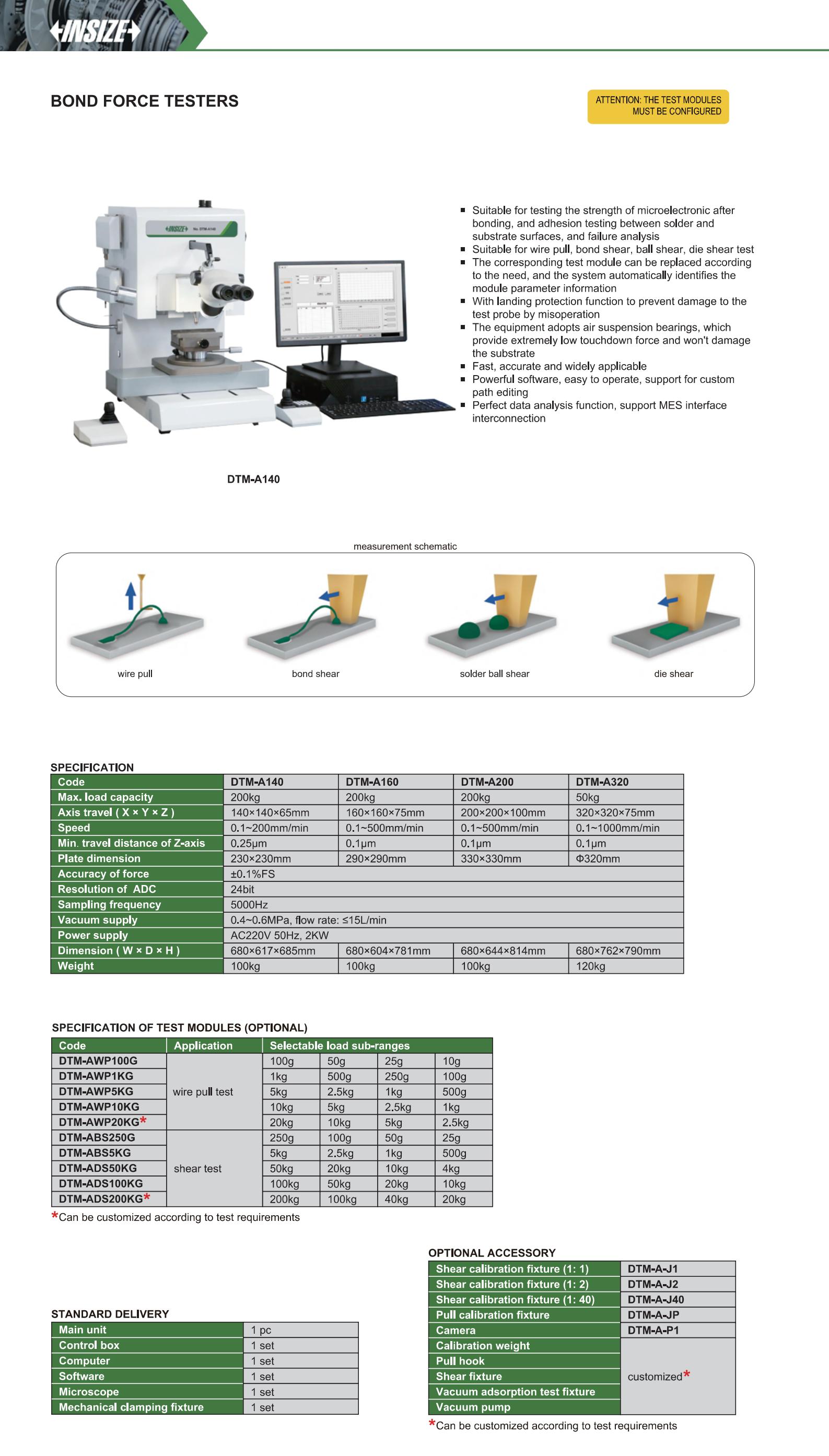 Suitable for wire pull, bond shear, ball shear, die shear test